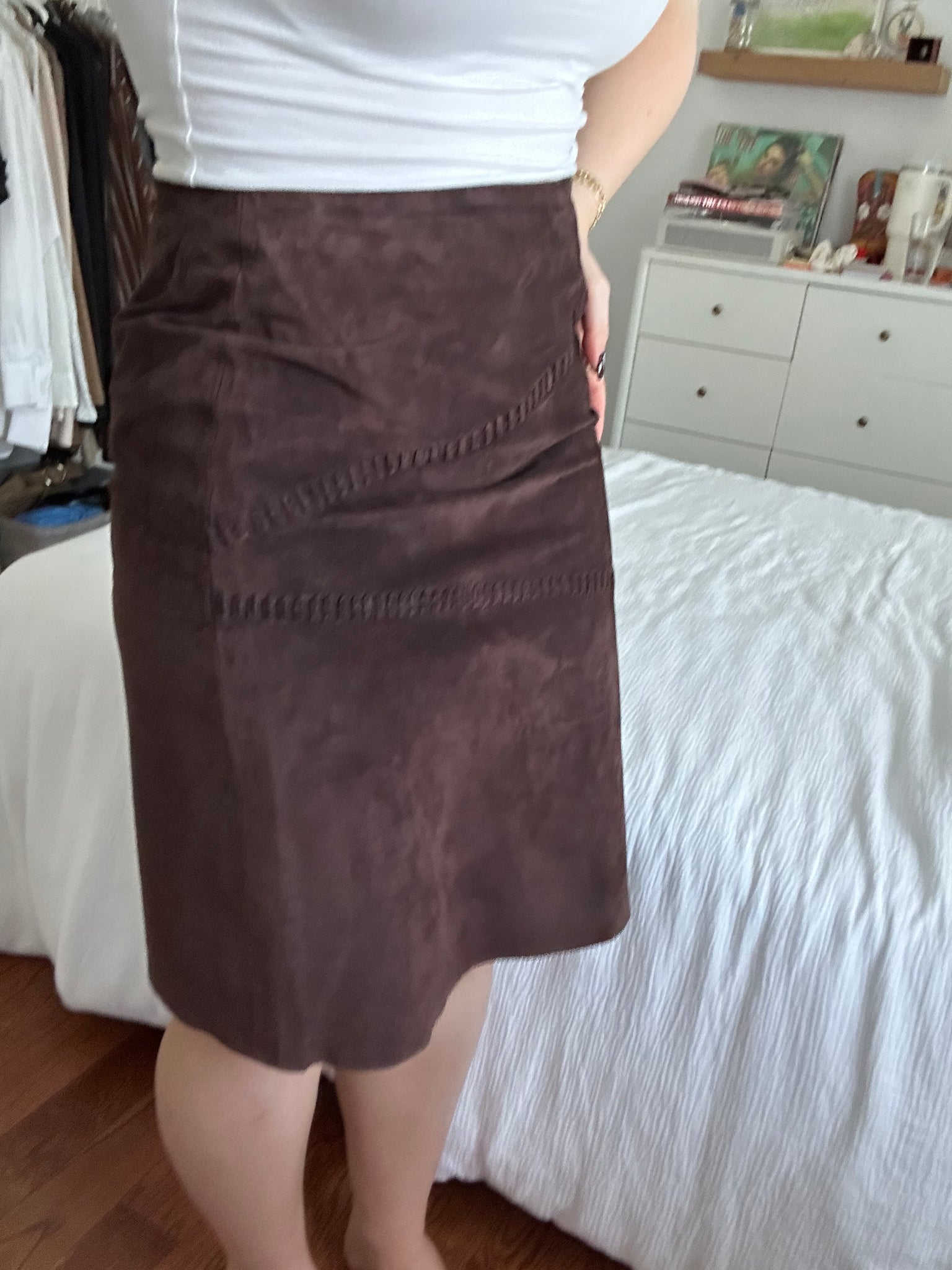 INC 100% Suede Brown Skirt sz 6